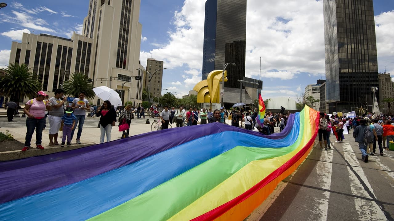 En la edición 38 de la marcha del Orgullo gay, una bandera arcoíris de 984 pies recorrió las calles de la Ciudad de México.