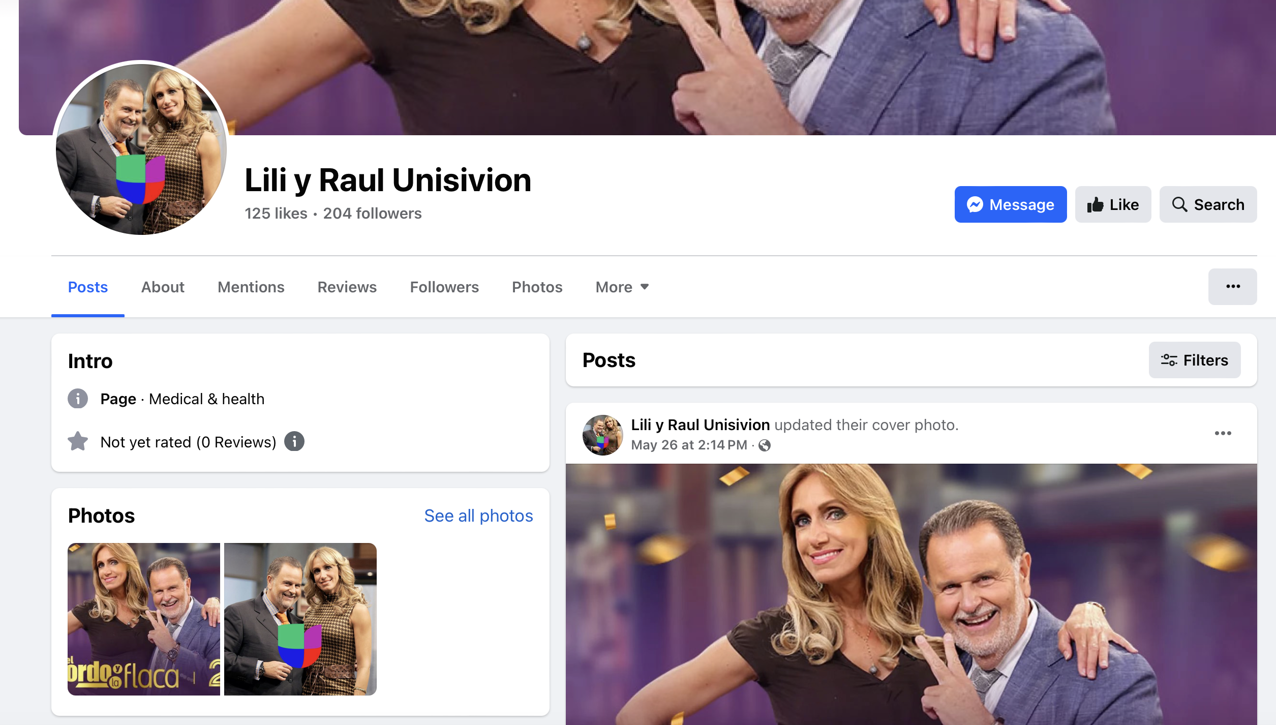 Al entrar al perfil comprobamos que, aunque en la foto se muestra a los conductores de El Gordo y La Flaca, este no corresponde con la cuenta oficial del programa en Facebook ni con ningún perfil oficial de Univision. Además, la cuenta se identifica como una página de salud.