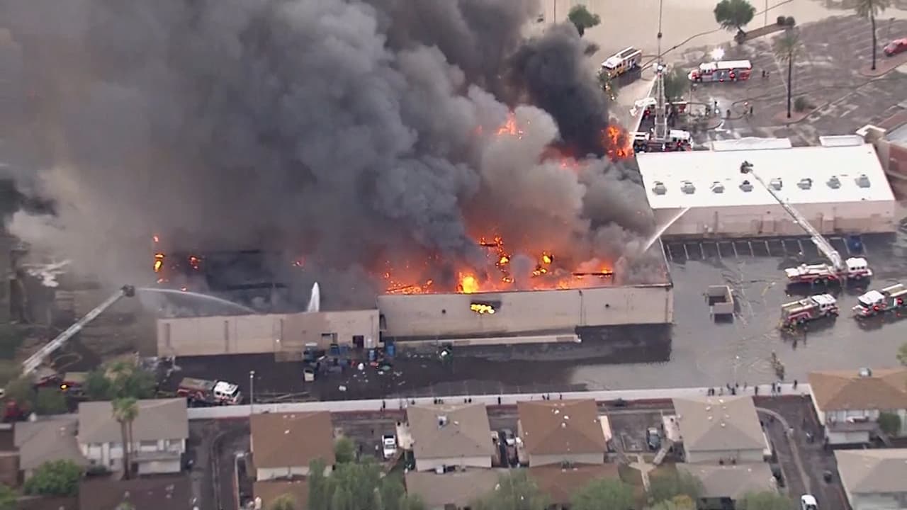 Llamas de 30 pies y el techo derrumbado: un incendio arrasa un supermercado en Arizona
