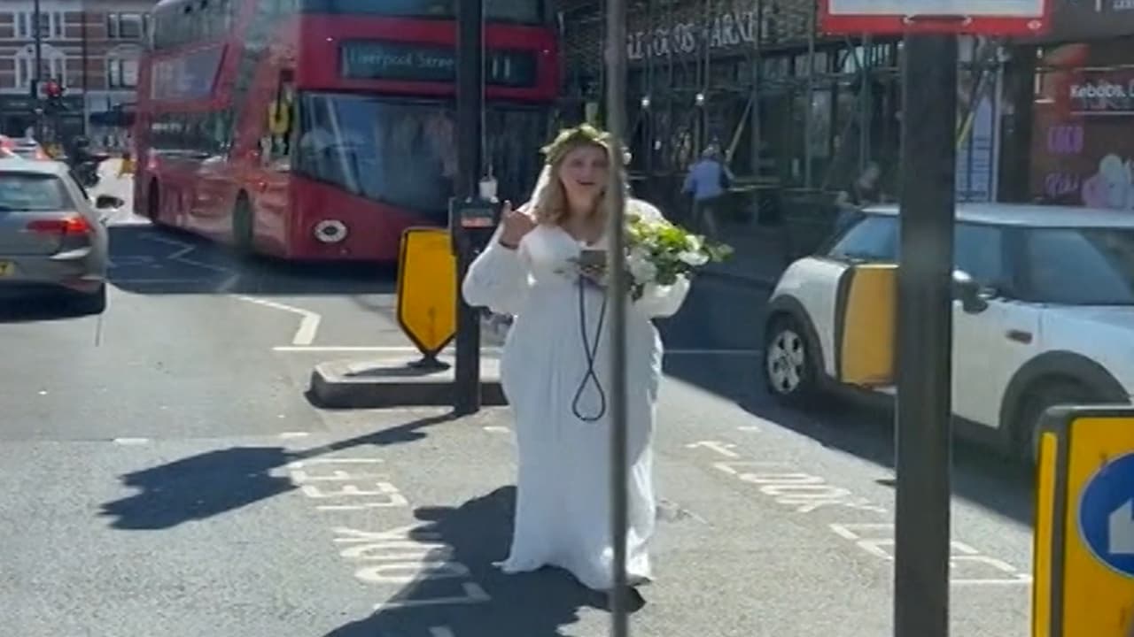 Anastasia, una novia a punto de casarse, recurrió a una última opción para poder llegar a su propia boda: pedir ‘aventón’ a los automovilistas. Un buen samaritano aceptó llevarla a ella y a sus dos acompañantes hasta la iglesia.