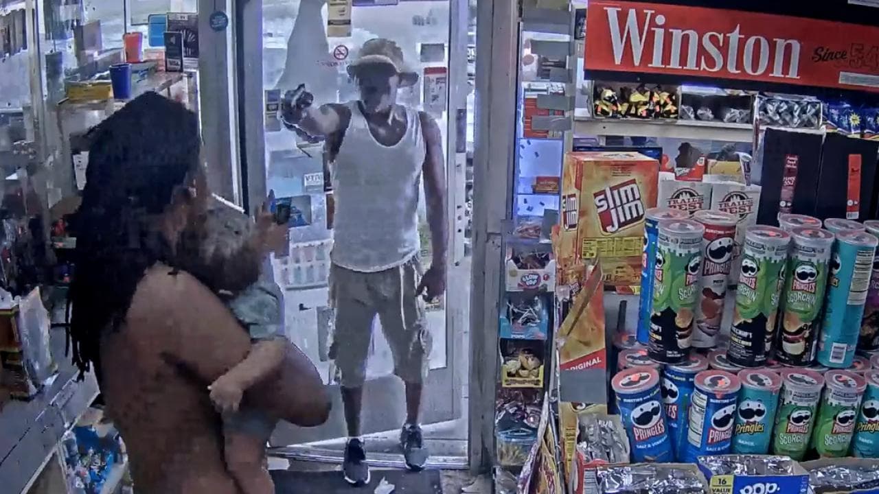 Cámaras de seguridad captaron el momento en que un hombre entró a una estación de servicio en Detroit, Michigan, con un bebé de 7 meses en brazos y un individuo le apuntó e intentó dispararle. Sigue las últimas noticias en Univision.