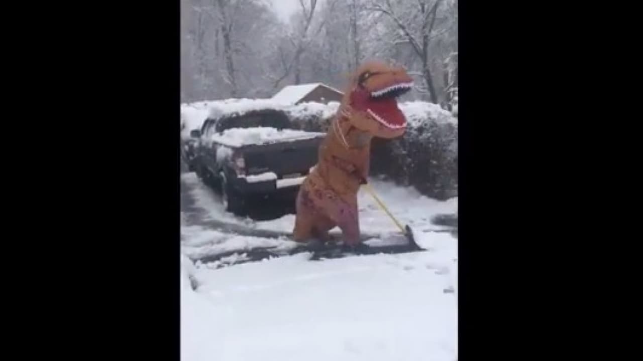 Los brazos cortos no son problema: los dinosaurios también pueden sacar la nieve de su casa