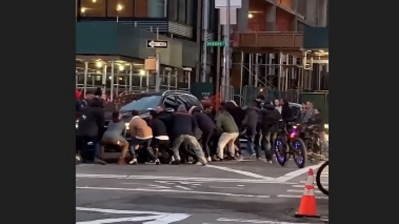 Los buenos samaritanos que corrieron a levantar un auto para sacar a una mujer atropellada en Manhattan