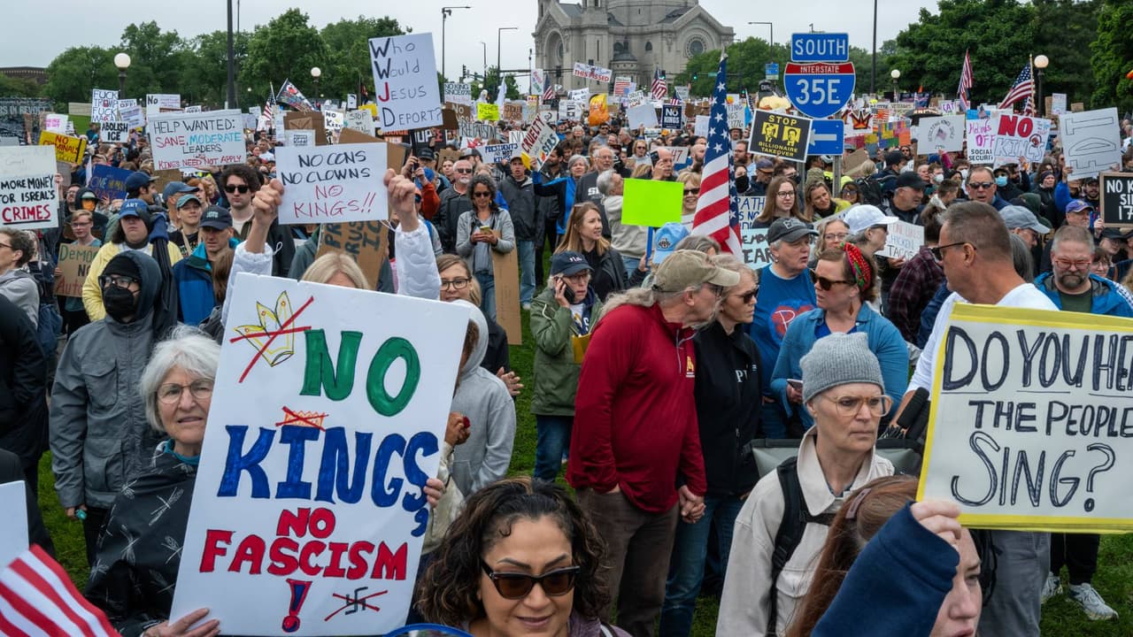 La congresista Melissa Hortman y su esposo fueron asesinados en un tiroteo con “motivos políticos” en Minnesota, según declaró el gobernador Tim Walz. Pese a que organizadores del ‘No Kings’ en el estado habían pedido que se cancelara la movilización ante el peligro que supone el atacante, quien sigue prófugo, miles de personas salieron a manifestarse contra del gobierno Trump y para repudiar este hecho de violencia.