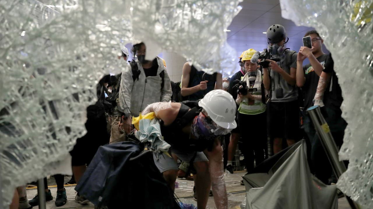 Manifestantes irrumpen en el Parlamento de Hong Kong en el aniversario de su entrega a manos chinas