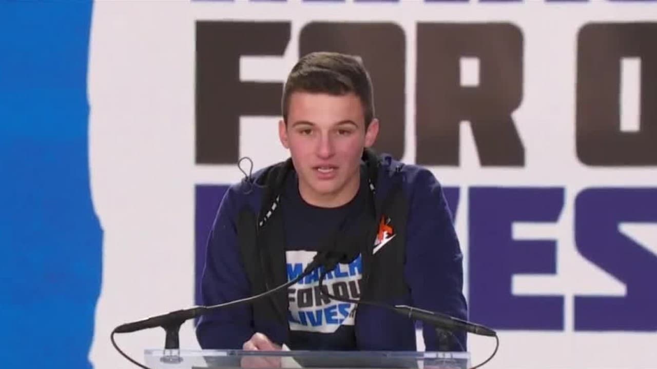 "Esto no solo pasa en las escuelas", dijo al inicio el estudiante Cameron Kasky, uno de los líderes del movimiento Never again. "Los estadounidenses están siendo atacados en iglesias, clubes, cines y en las calles, pero nosotros –la gente– podemos arreglarlo. Siento esperanza, pero todo depende de ustedes. Esta marcha no es el climax de este movimiento, es el comienzo (...) Hoy es un mal día para la tiranía y la corrupción, hoy tomamos las calles para pedir leyes de control de armas con sentido común, hoy es el comienzo de un nuevo y brillante futuro para este país".