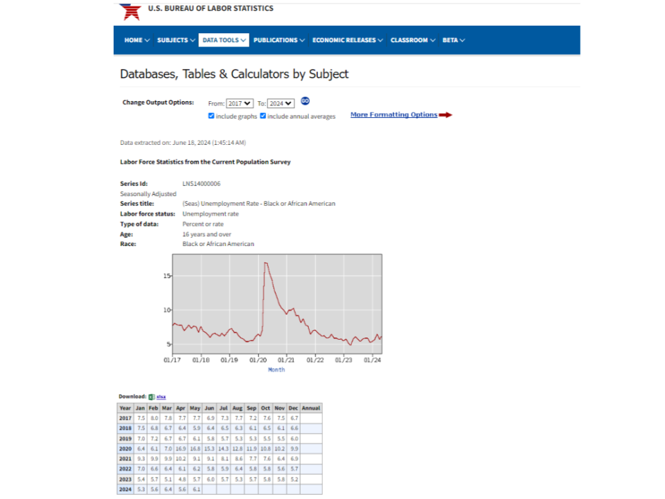 “Las estimaciones del Suplemento Social y Económico Anual de la Encuesta de Población Actual (CPS ASEC) muestran que la población negra fue uno de los únicos grupos demográficos importantes que experimentó un cambio significativo en la pobreza entre 2021 y 2022”, explica el CB. Además, agrega que la tasa oficial de pobreza de la población negra de Estados Unidos alcanzó un mínimo histórico del 17,1 % en 2022, según datos de la Oficina del Censo.
