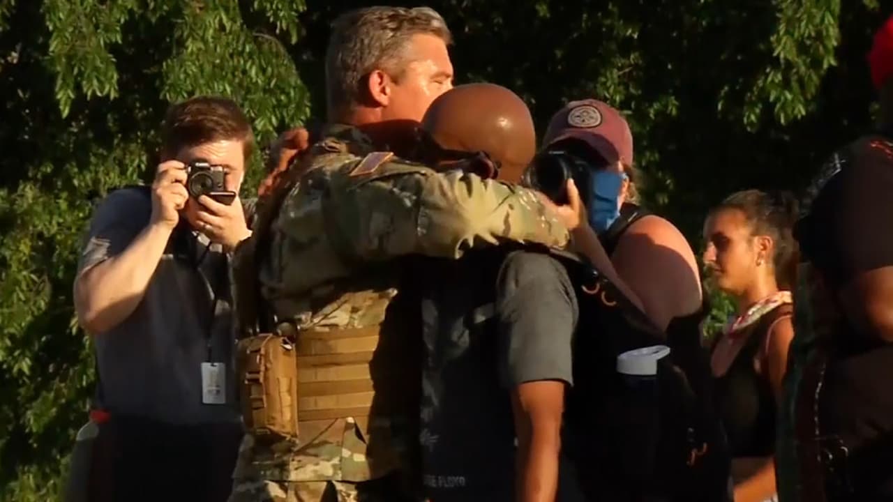 Un coronel de la Guardia Nacional se arrodilla frente a un grupo de manifestantes para expresar su solidaridad con el homenaje y demostración pacífica por la muerte de George Floyd. Los abrazó y prometió hacer cumplir la Primera Enmienda. Más noticias aquí.