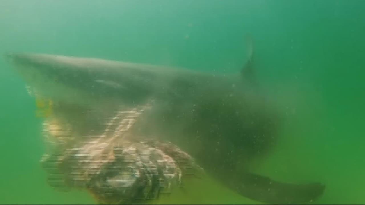 Las imágenes fueron grabadas por el Dr. Greg Skomal de la División de Pesquería Marina de Massachusetts con una cámara GoPro cerca del Refugio Nacional de Vida Silvestre Monomoy.