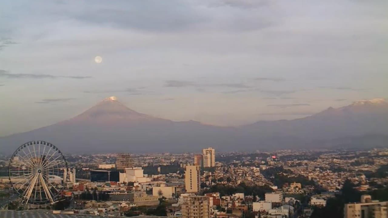 La luna parece ocultarse dentro del cráter del volcán, el segundo pico más alto de México.