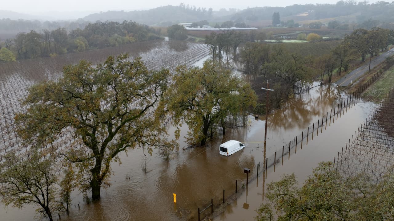 Santa Rosa, California, registró su período de tres días más húmedo registrado con aproximadamente 12,5 pulgadas (32 centímetros) de lluvia, cayendo el viernes por la noche, según el Servicio Meteorológico Nacional en el Área de la Bahía.