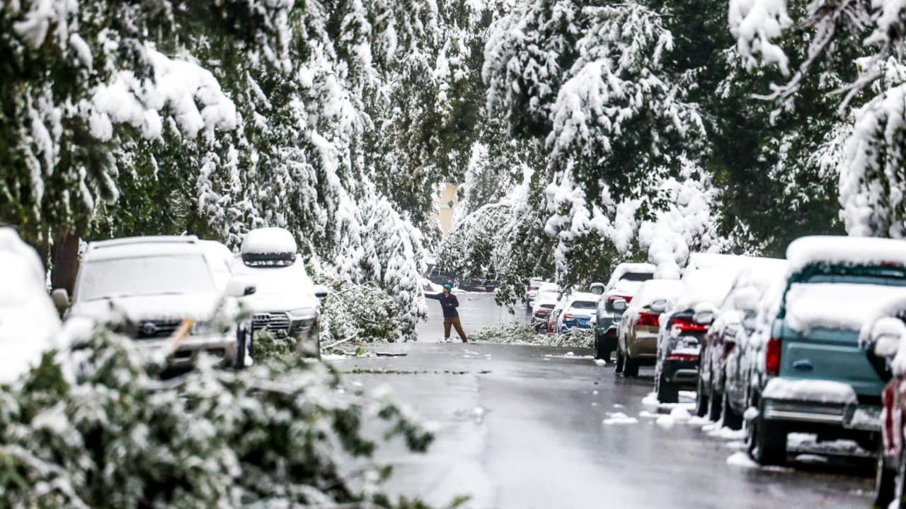 "Dada la profundidad del aire frío que infiltró el oeste, la acumulación de nieve también puede llegar en zonas bajas y el valle interior, cerca de la costa del Pacífico, donde la nieve es poco común", señala el pronóstico del NWS en la mañana de este jueves.