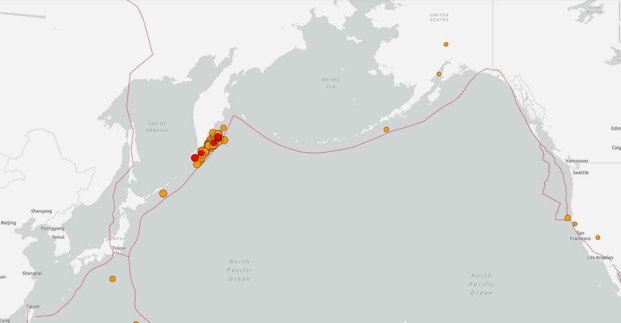 Las réplicas más potentes tuvieron una magnitud de 6.9 y 6.3, también frente a la costa rusa.