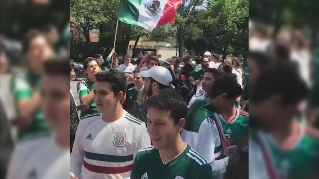 Luego de la victoria de Corea del Sur sobre Alemania que garantizó la clasificación a la próxima ronda del mundial de fútbol a la selección mexicana, los seguidores del TRI fueron con sus banderas, playeras y su ánimo a agradecerle al diplomático presente en la Ciudad de México.