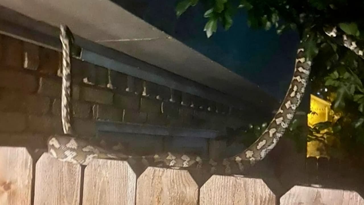 Un vecindario teme por la presencia de una serpiente pitón que se desliza por algún lugar sin que nadie haya podido atraparla. De acuerdo con Clayton Lee, uno de los vecinos, el animal podría medir hasta 15 pies de largo.