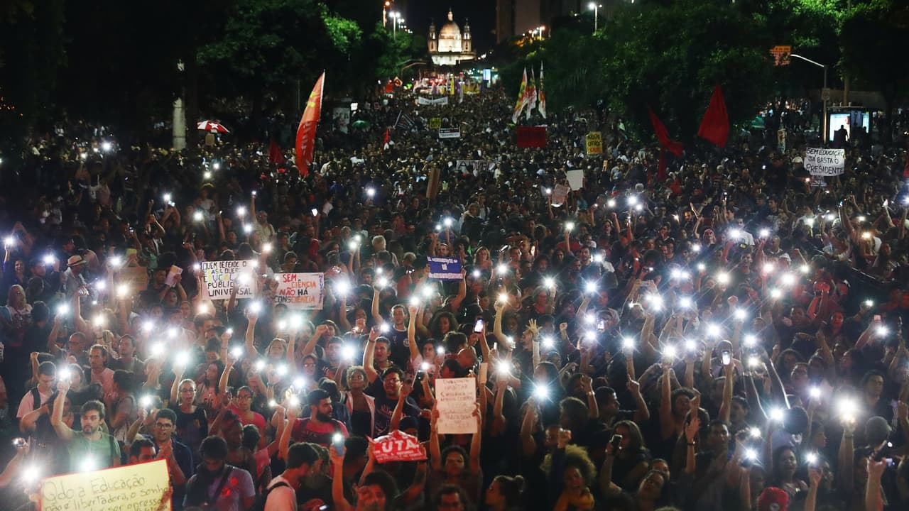 Cientos de miles salieron a las calles en Brasil para protestar contra un plan de congelamiento de recursos de las universidades federales, la primera muestra masiva de descontento desde la llegada al poder de Bolsonaro, quien tildó a los manifestantes universitarios de "tontos útiles", manipulados por "una minoría".