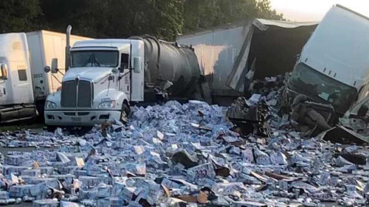 Miles de latas de cerveza derramadas en una carretera de Florida: la imagen tras un accidente de cinco camiones de carga