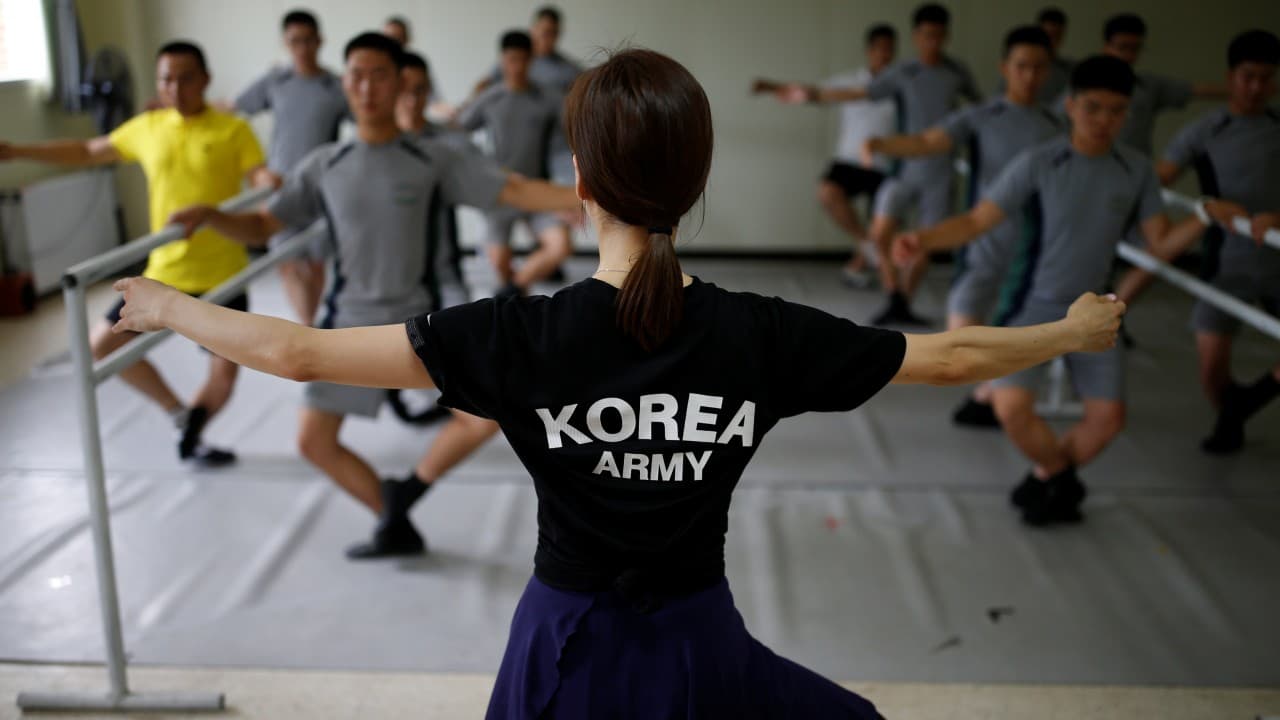 El ballet ayuda a los soldados surcoreanos que vigilan la frontera con Corea del Norte a fortalecerse y relajarse.