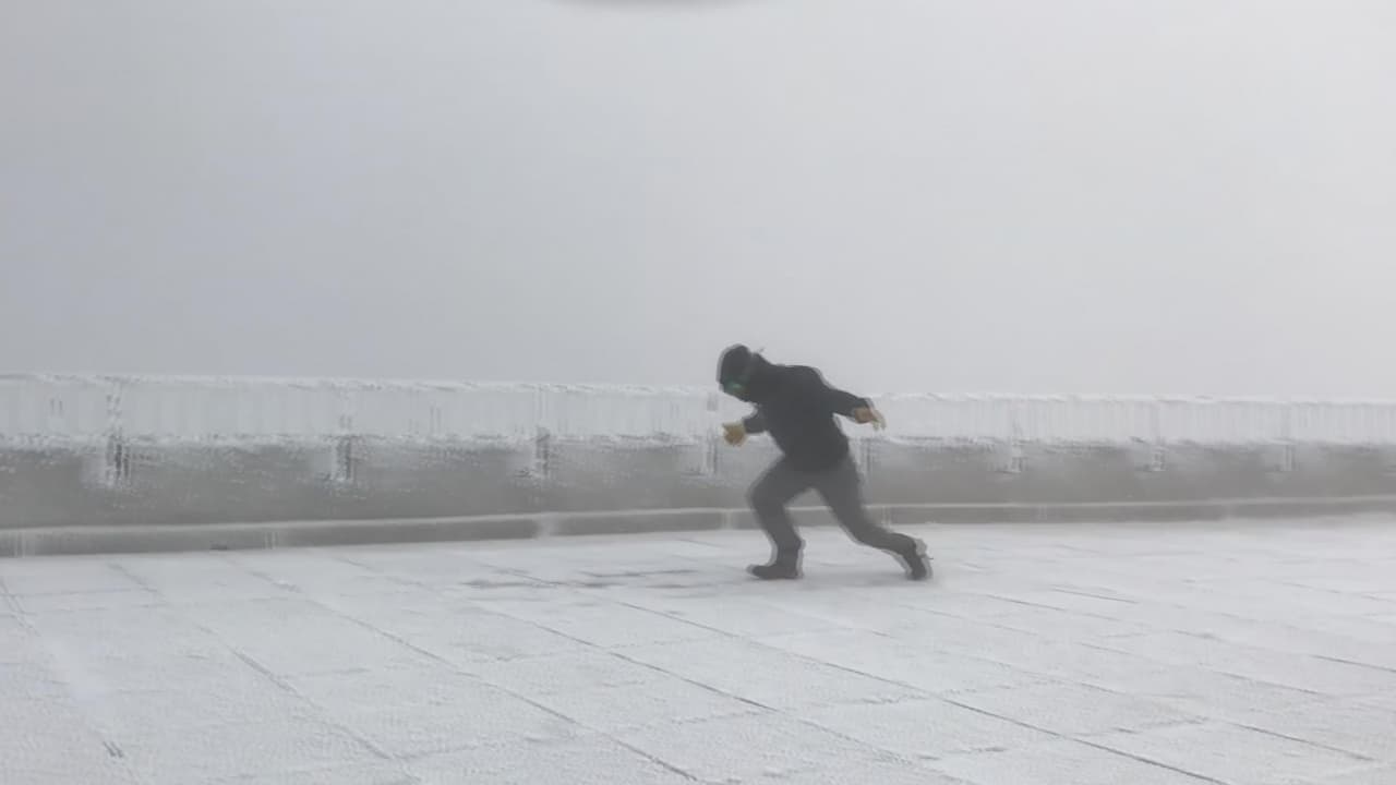 En uno de los días más fríos de la temporada, el meteorólogo Tom Padham, salió para someterse a vientos de unas 205 mph. El y su acompañante hicieron un video para demostrarlo en el observatorio de Mount Washington, Nuevo Hampshire.