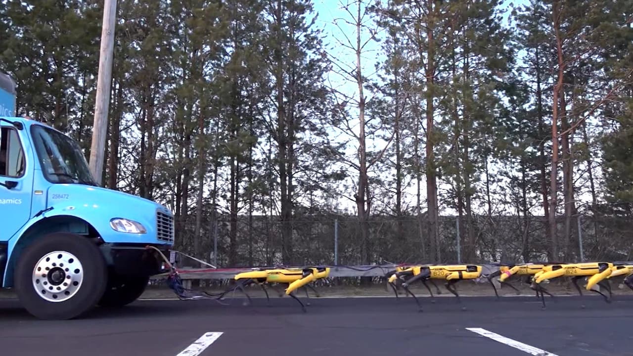Mira cómo estos robots con forma de perro son capaces de arrastrar un camión