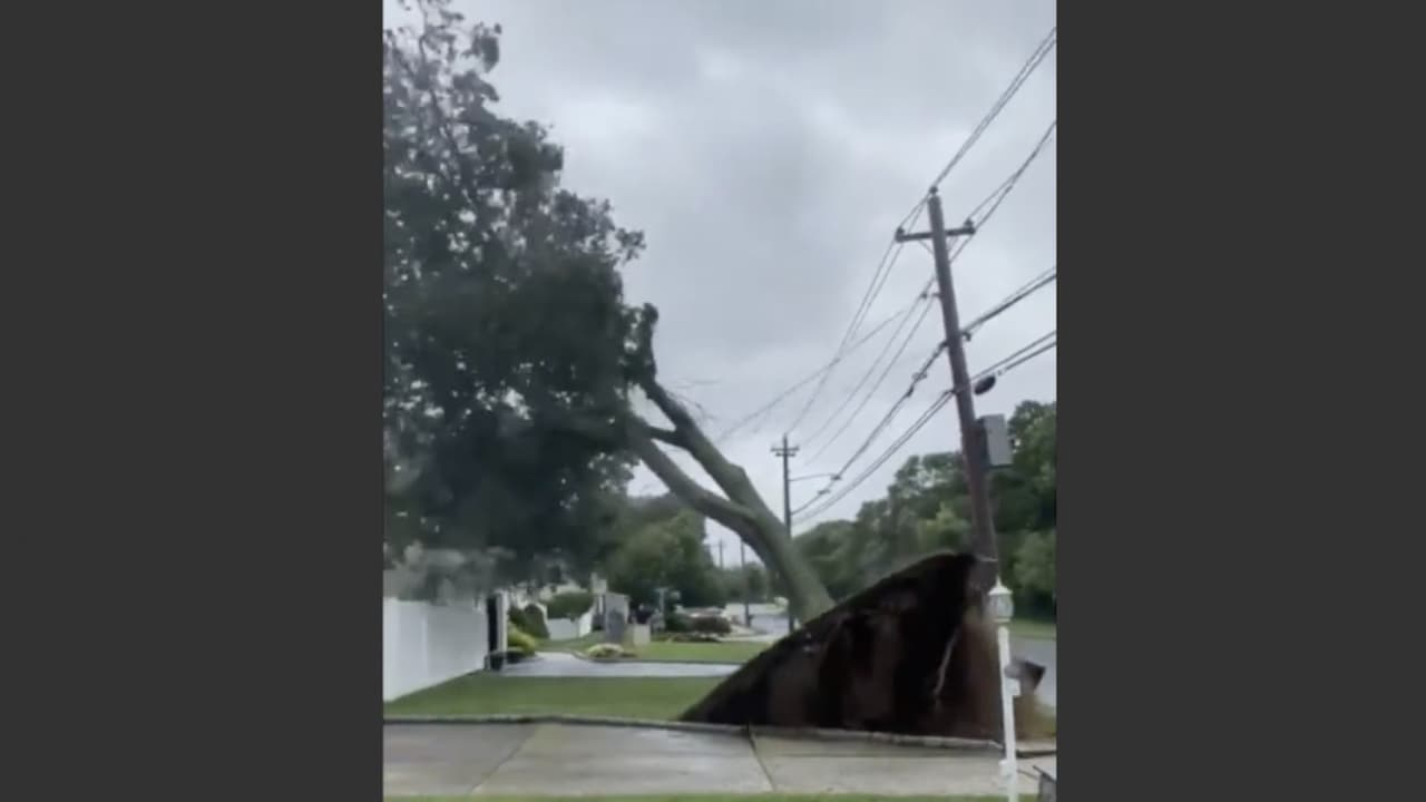 Mira cómo los poderosos vientos de Isaías arrancan un árbol de raíz en Long Island