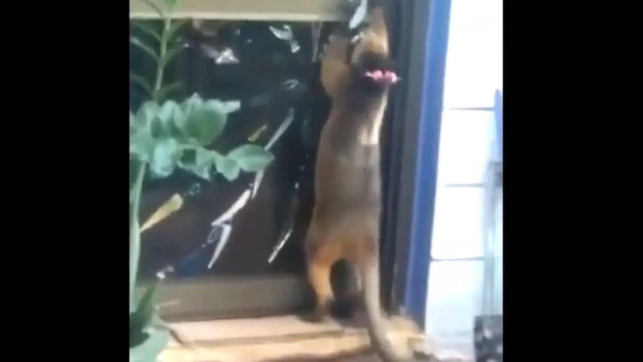 Mira el asombroso momento en que un canguro abre la puerta de un hotel y se cuela dentro