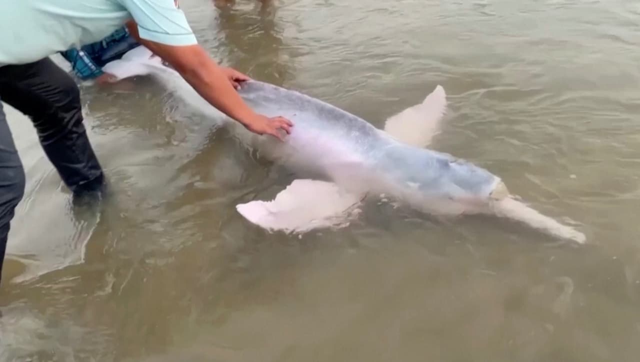 Mira el rescate de un delfín rosado en peligro de extinción en un río amazónico