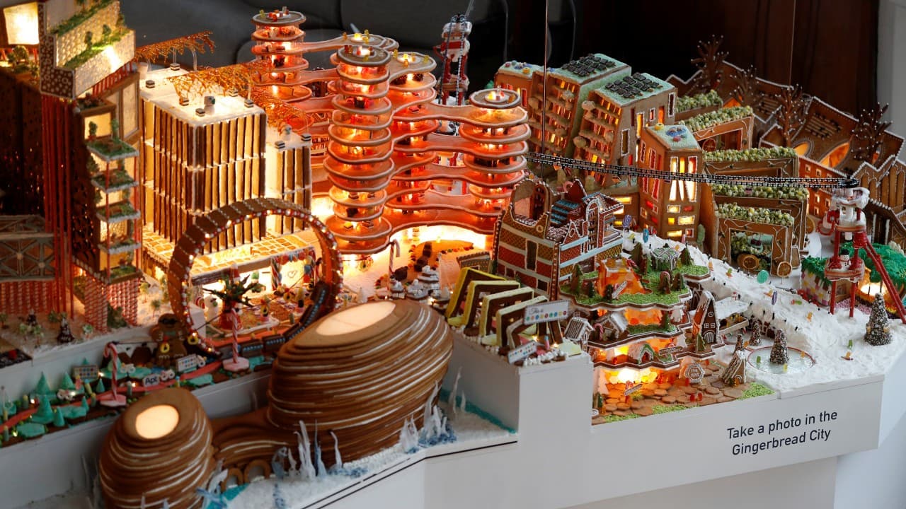 El museo V&A de Londres mostró la ciudad comestible con más de 60 estructuras de pan de jengibre que cuenta además con teleférico, carriles para bicicletas y una ruta peatonal hecha de azúcar.