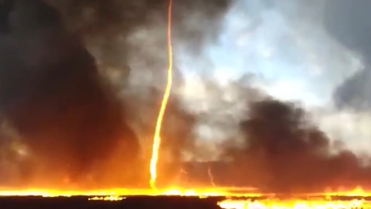Los tornados de fuego se producen cuando el aire caliente y seco se eleva rápidamente desde el suelo y forma una columna que alcanza el aire más frío en la atmósfera. En Reino Unido captaron uno que se formó durante el incendio en una fábrica.