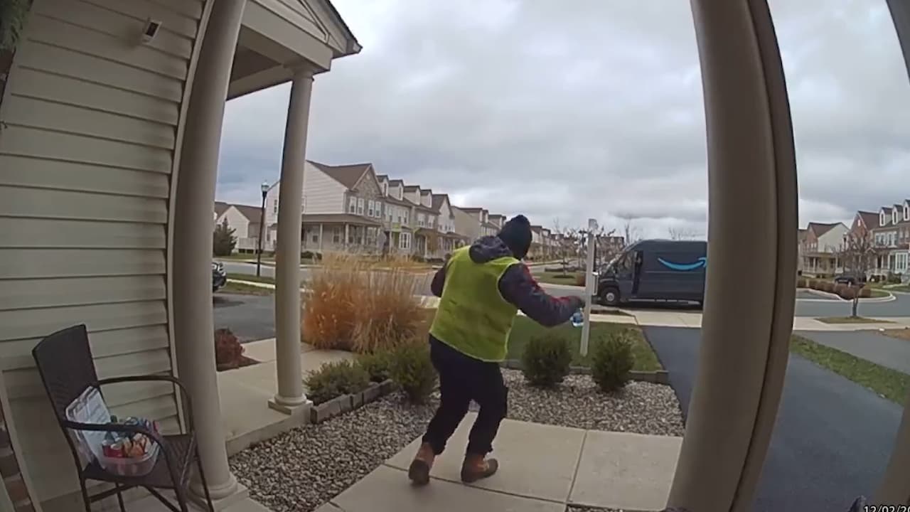 Mira la reacción de un repartidor de Amazon al encontrar la sorpresa que le habían dejado en una casa