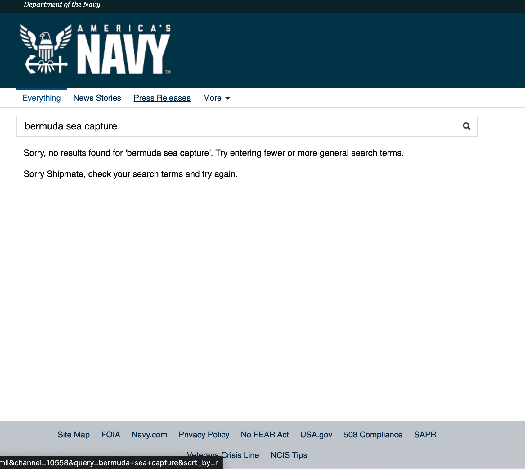 Navy.mil. Búsqueda con las palabras, en inglés, “monstruo bermuda”, “mar, Bermuda, captura” y “Bermuda, monstruo marino, captura”. Consultado el 28 de junio de 2023.