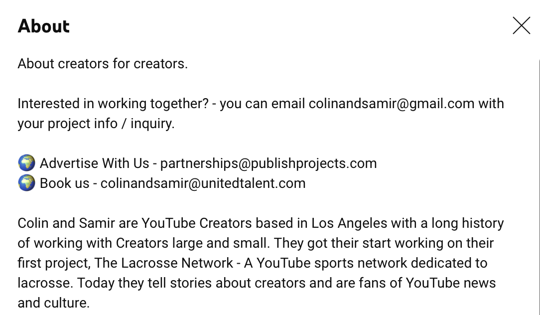 Por medio de una búsqueda inversa de imágenes en Google, elDetector encontró el video original publicado en la cuenta de Colin and Samir, un canal de YouTube conducido por Colin Rosenblum y Samir Chaudry “sobre creadores para creadores”, según se lee en la descripción de la cuenta. Al comparar la entrevista difundida hace más de dos años (el 20 de septiembre de 2021) con la publicación objeto de esta verificación, notamos que la vestimenta de MrBeast y la de los conductores, así como el escenario en el que se encuentran, son iguales.