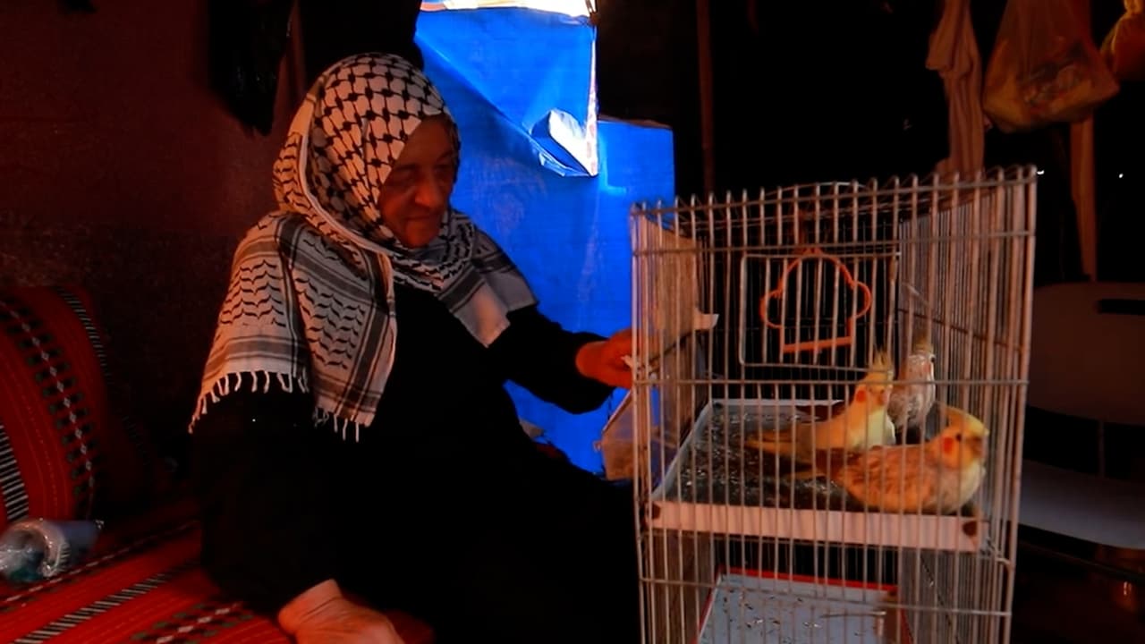 Fakhr Taj Shaqir tuvo que dejar todo para buscar refugio ante las amenazas del ejército israelí, pero no pudo abandonar a las mascotas que la han acompañado durante varios años y ahora se resguarda junto con ellas.