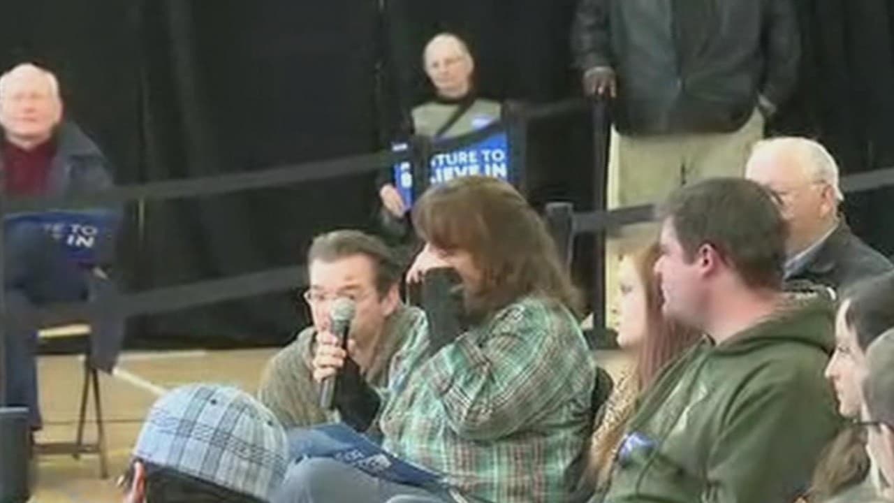 Mujer rompe en llanto ante Bernie Sanders