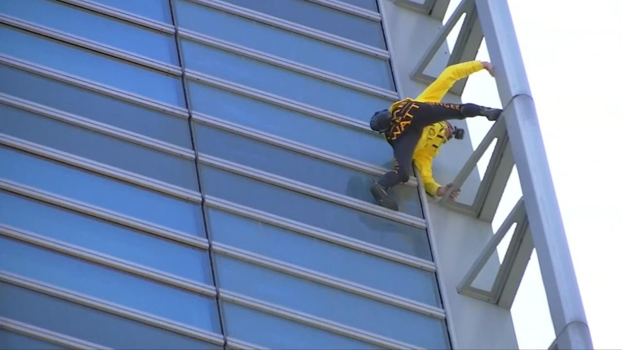 El 'Spiderman francés' escala un rascacielos de Hong Kong para enviar un mensaje de paz