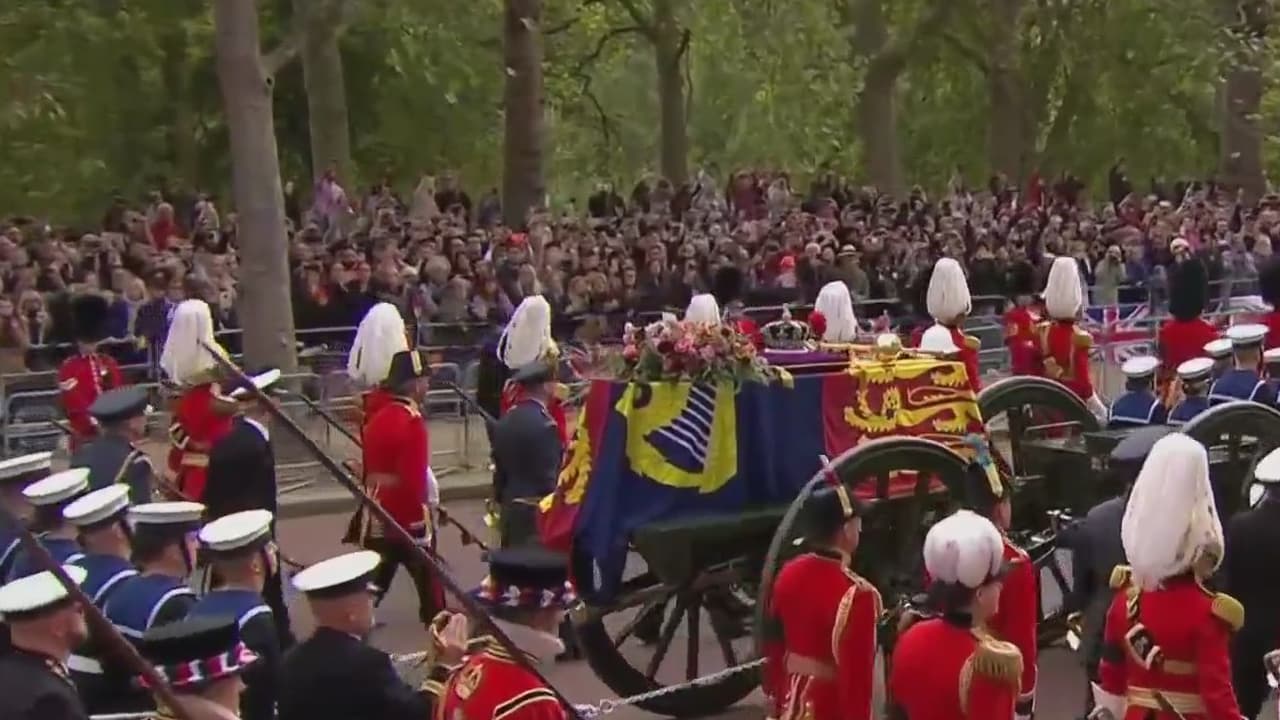 A medida que la procesión avanza, las calles de Londres lucen concurridas y se quedan en silencio al paso del féretro de la reina Isabel II presentando sus respetos. El Big Ben da campanadas a intervalos de 60 segundos mientras el cortejo se dirige hacia el Arco de Wellington.