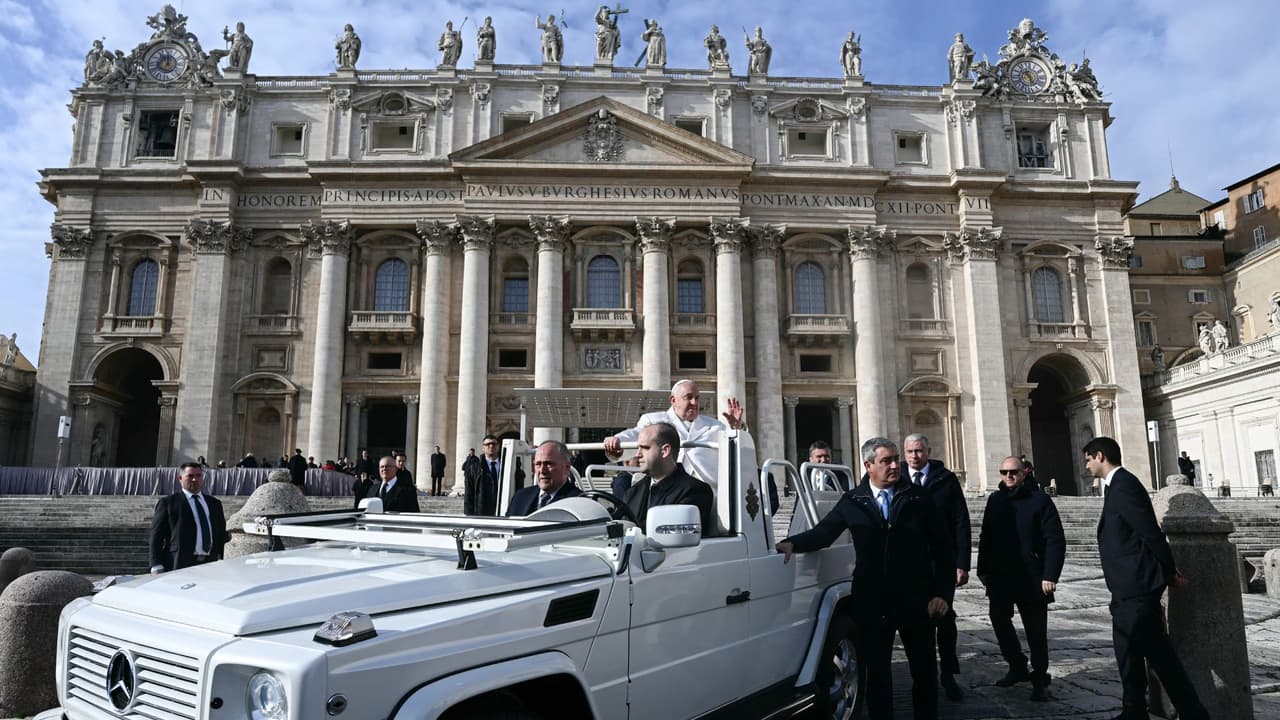 Francisco emergió de su convalecencia este 'Domingo de Pascua' para bendecir a las miles de personas en la plaza de San Pedro y sorprenderlas con un recorrido en el papamóvil, lo que provocó vítores y aplausos.