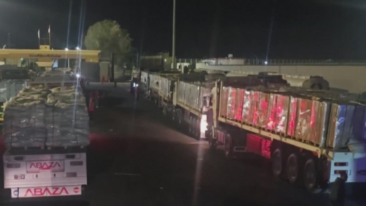 Egipto anunció el envío de 400 camiones de ayuda a Gaza el domingo. Imágenes de AP mostraron decenas de camiones cruzando el lado egipcio del cruce fronterizo de Rafah.
