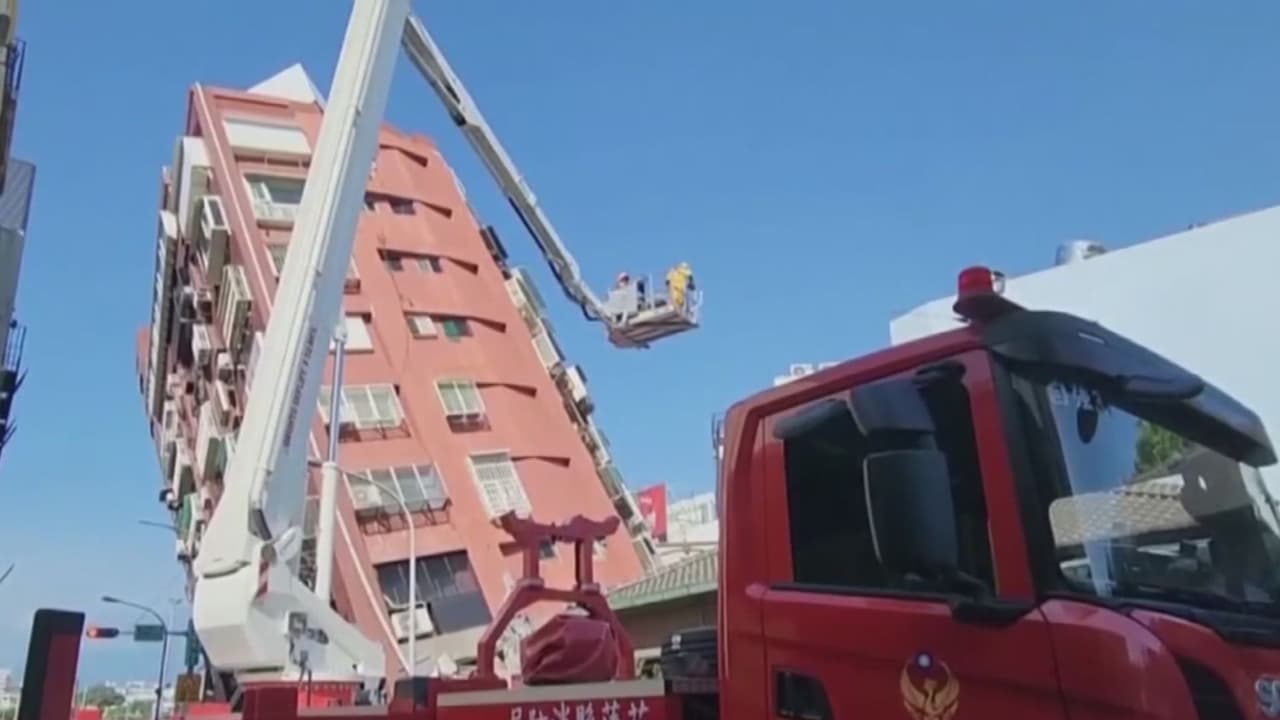Un edificio de cinco pisos en Hualien parecía gravemente dañado, el primer piso se derrumbó y dejó el resto inclinado en un ángulo de 45 grados. Al menos dos edificios colapsaron en esa ciudad, y los bomberos dijeron que temen que haya personas atrapadas entre las ruinas.