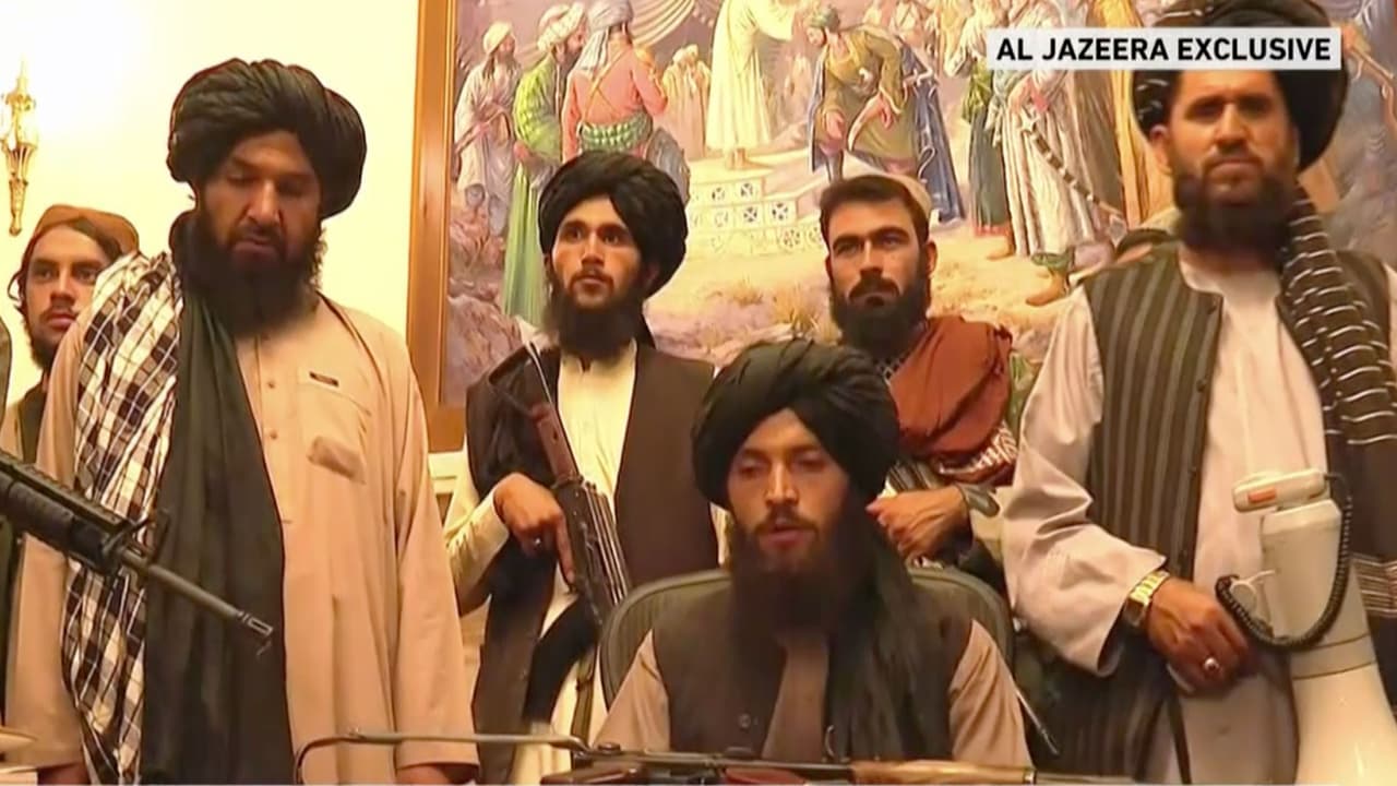 Horas antes, decenas de combatientes talibanes habían tomado el control del palacio presidencial, declarando la victoria sobre el gobierno afgano en imágenes transmitidas por televisión.