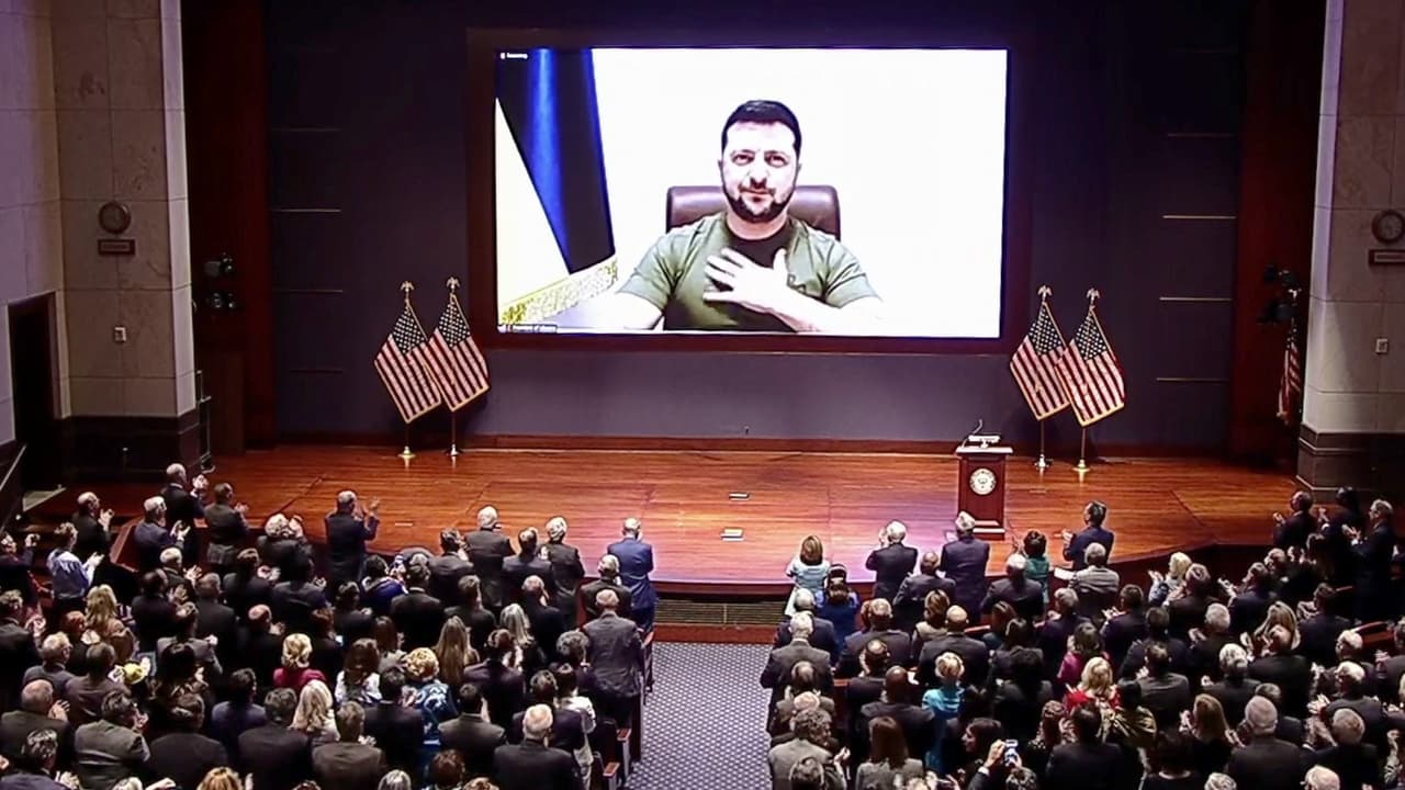 El presidente de Ucrania, Volodymyr Zelensky, se dirigió este miércoles al Congreso de Estados Unidos en una sesión especial conjunta de las dos Cámaras que dedicó a agradecer a Estados Unidos su apoyo pero también a pedir que "haga más" para defender a su país de la invasión rusa.