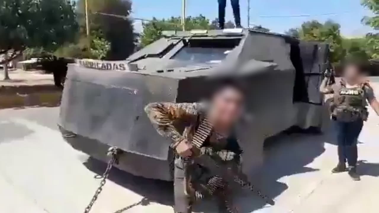“¡Gracias por otro regalito!”, grita emocionado un joven armado que viaja en el techo de un vehículo blindado de fabricación casera, que es remolcado por otro ‘camión monstruo’. Este y otros presuntos miembros del Cartel Jalisco Nueva Generación (CJNG) celebraban que habían logrado arrebatarles la tanqueta hechiza a sus acérrimos rivales, la organización criminal conocida como ‘Los Viagras’.