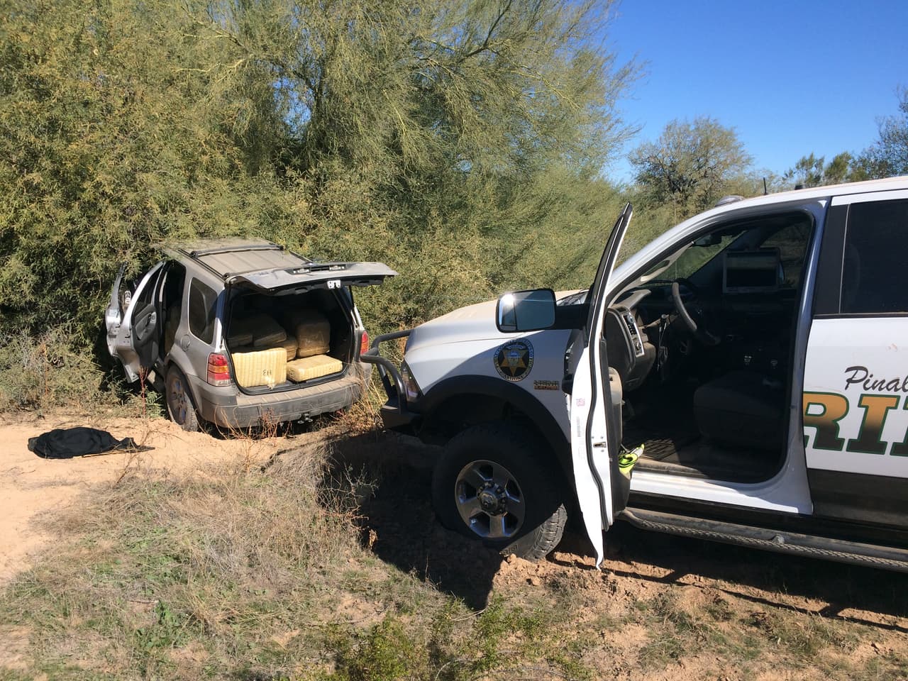 Un persecución y choque en el desierto llevó a que unos agentes encontraran 280 libras de marihuana y arrestaran a un contrabandista.