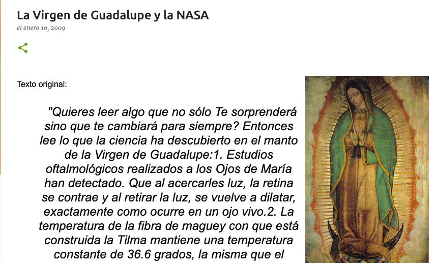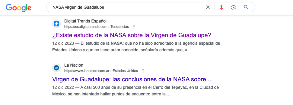 En elDetector hallamos publicaciones incluso de 2009 que mencionaban el falso estudio de la NASA sobre la imagen de la Virgen de Guadalupe.