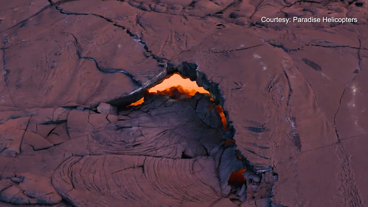 El magma del volcán Kilauea se puede ver a través de las grietas del cráter. Se cree que las grietas han causado alrededor de 50 pequeños terremotos en las zonas cercanas.