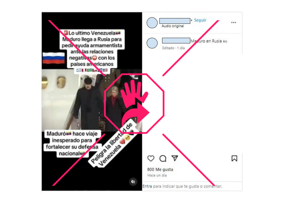 Publicaciones en Facebook afirman que Nicolás Maduro, presidente de Venezuela, viajó a Rusia a pedir “ayuda armamentista ante las relaciones negativas con países latinoamericanos”, pero eso es falso. Al posteo que afirma tal cosa le acompaña un video que está fuera de contexto porque no es actual, sino de 2018. Una búsqueda inversa de imágenes en Google Lens, en X Search Advanced y con palabras clave nos llevaron al video original de hace seis años y a reseñas de medios de comunicación de Venezuela, que informaron de la visita. La última vez que Maduro viajó a Rusia fue en 2019. Lee aquí cómo escogemos y asignamos nuestras etiquetas en elDetector.