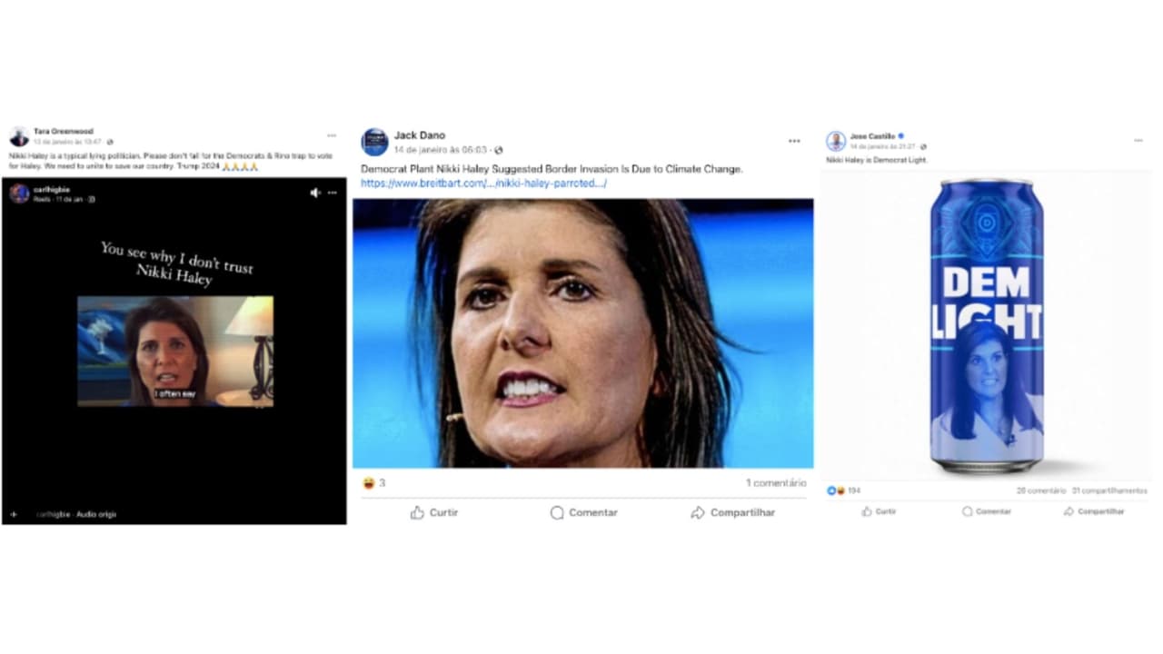 Entre 12 y 15 de enero, al menos diez páginas de Facebook, con más de 290 mil seguidores, difundieron de forma sistemática publicaciones que acercaban Haley a la ex primera dama y ex candidata presidencial demócrata Clinton (que también ya ha sido víctima de campañas de desinformación). Entre esas páginas, estaba, por ejemplo, Pray for President Trump, que reúne 1.8 mil seguidores.
