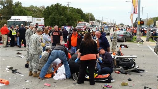 La escuela dijo en un mensaje por Twitter: "La Universidad Estatal de Oklahoma está triste por el trágico incidente ocurrido durante el desfile esta mañana. Nuestros pensamientos y oraciones están con los afectados".