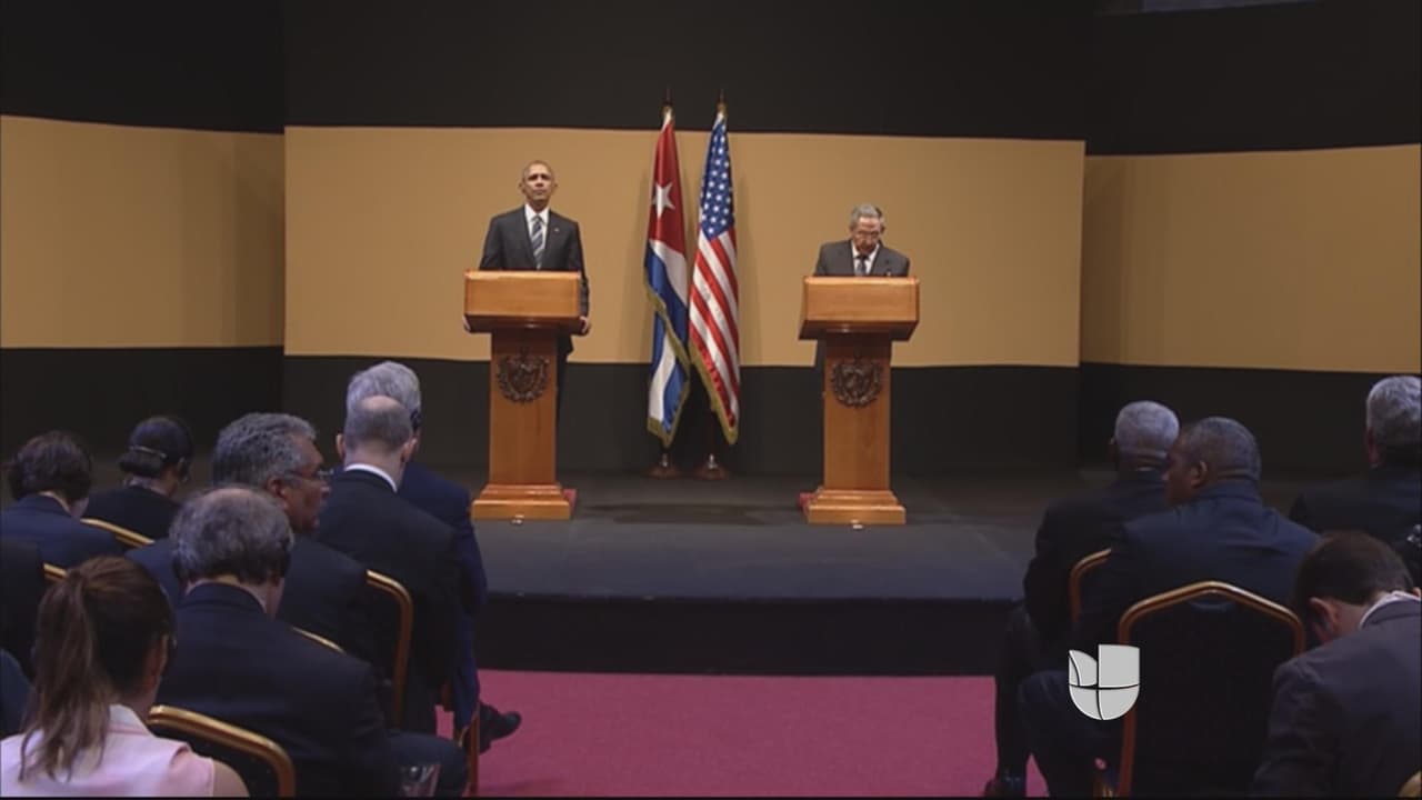 Durante su histórica rueda de prensa junto al gobernante cubano Raúl Castro, Obama declaró, "Cuba es soberana, y está en lo correcto al estar orgulloso de ello, y el futuro de Cuba será decidido por los cubanos, y no por cualquier otra persona".