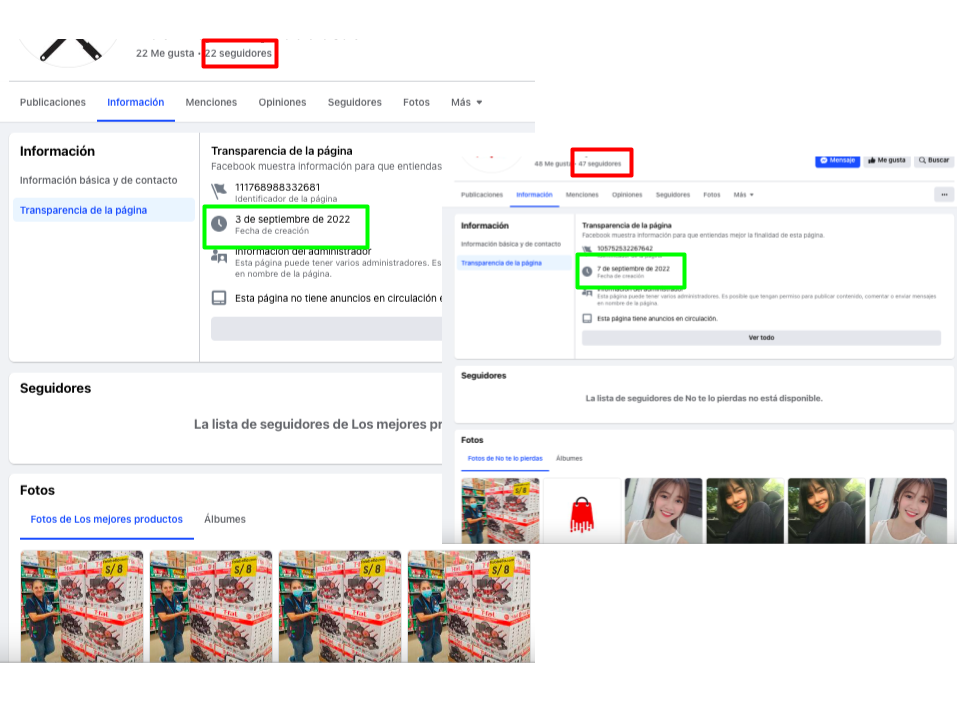 Se trata de perfiles creados en septiembre de 2022, con muy pocos seguidores y que anteriormente a las publicaciones que estamos verificando solamente tienen unas pocas fotografías no relacionadas con productos de cocina ni con Falabella.